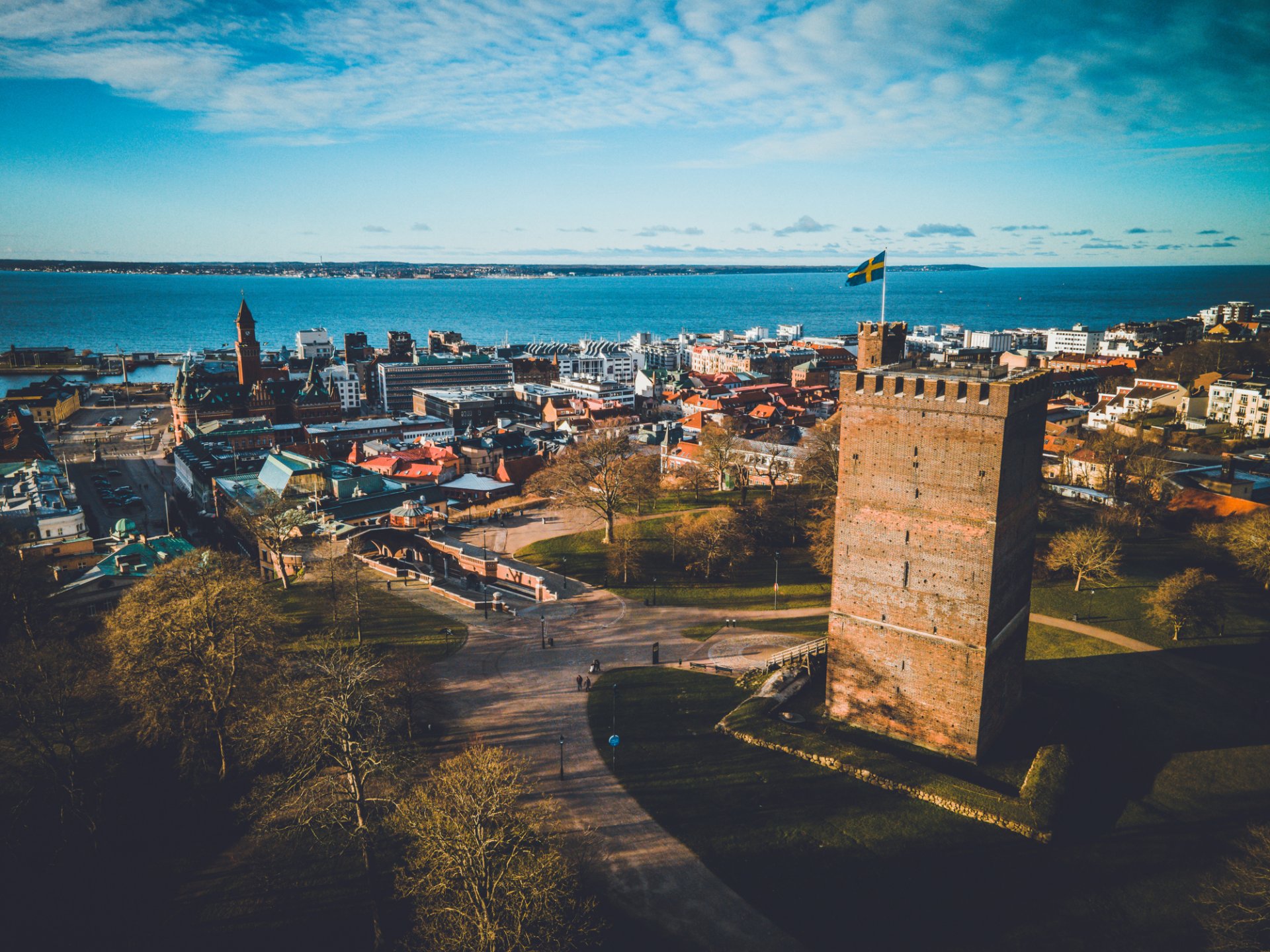 • Du kan nyde den smukke udsigt fra udsigtstårnet Kärnen, som er et middelalderligt fæstningstårn i Helsingborg i Sverige. Det blev opført i begyndelsen af 1300-tallet som en del af byens forsvar og fungerede som et vigtigt militært symbol i kampen mellem Danmark og Sverige. I dag er det et vartegn for Helsingborg og et populært udsigtspunkt med panorama over Øresund. Bemærk: Der er 146 trappetrin til toppen. Entré ikke inklusiv – ca. 100 svenske kr. Betales på stedet.